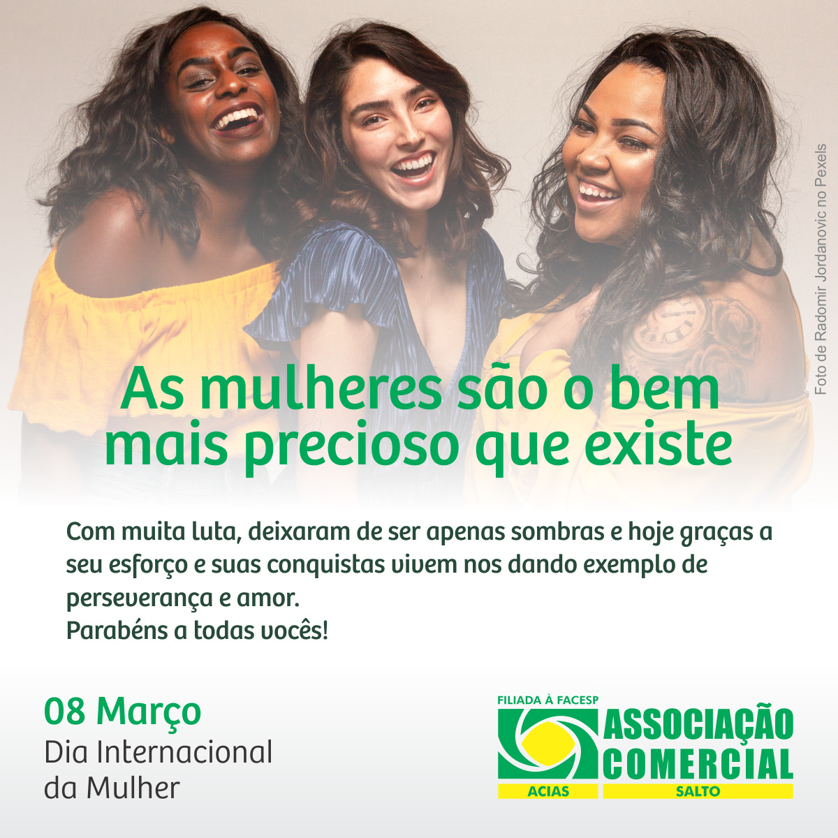 Mulheres de todo mundo, sejam felizes e nunca desistam dos sonhos e princípios em que acreditam. Feliz Dia da Mulher!